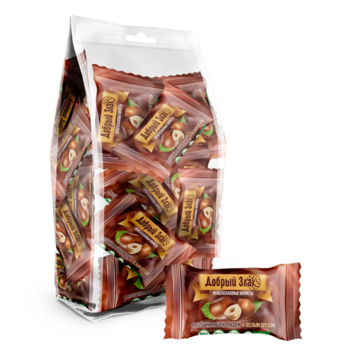 ДОБРЫЙ ЗЛАК Мультизлаковые конфеты с лесным орехом и молочным шоколадом,1000г х 6