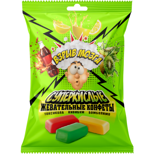 ВЗРЫВ МОЗГА Кислые жевательные конфеты киви, 45г х 16